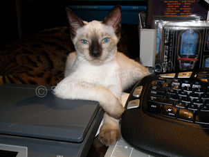 Thought you might like another update and a few more photos. Tiberius is doing SO well!! He has 100% completely adjusted to his new home. He shows NO fear of anything and loves my condo. He and Landru have also become BEST buds!! The play together constantly. Landru has taken on the roll of "Dad" (I'd say "Mom"...but he is a boy, ya know...LOL). He grooms Tiberius constantly and gets a real kick out of his kitten shenanigans. It is a joy to watch the 2 of them interact together. Tiberius has taken to me like his new Mom AND Dad too.
